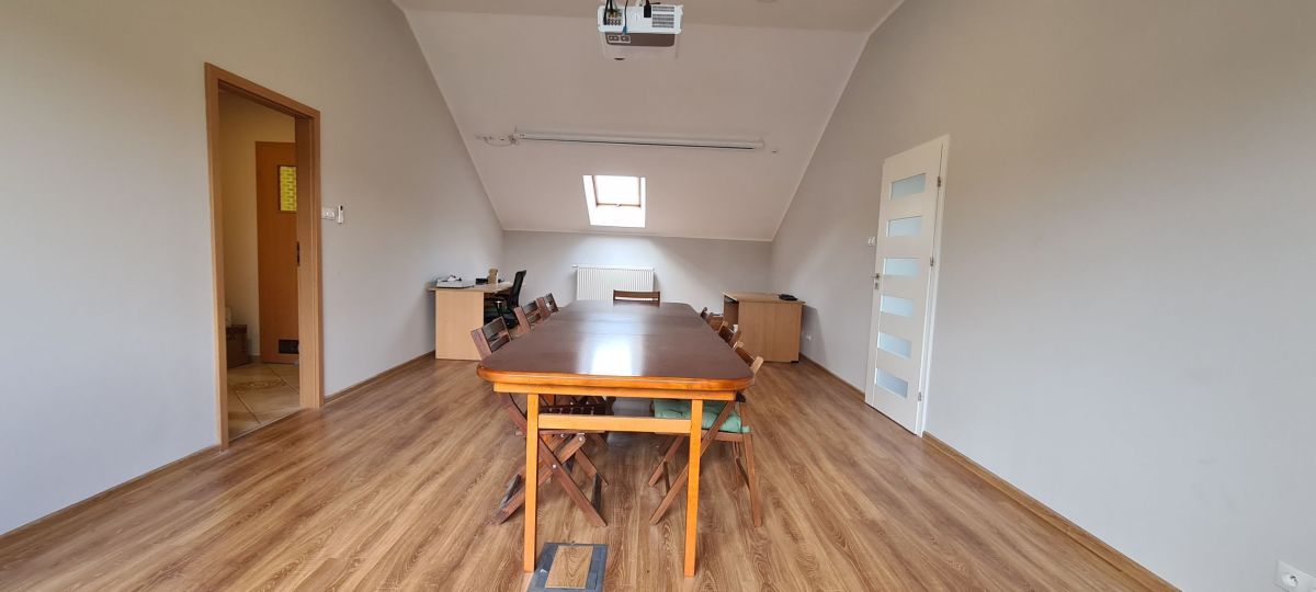 poddasze: o powierzchni 100m2 w układzie: sala konfrencyjna, dwa gabinety, łazienka