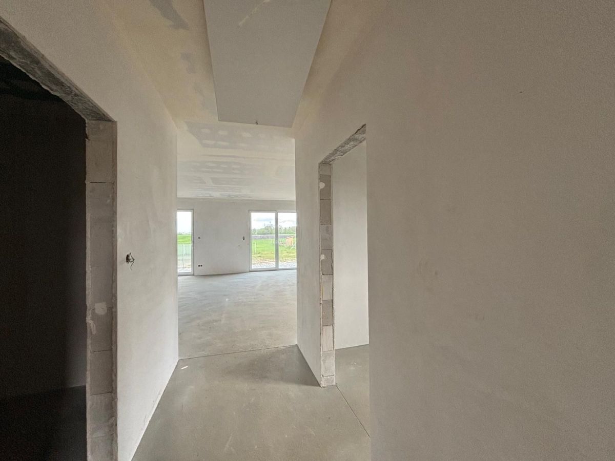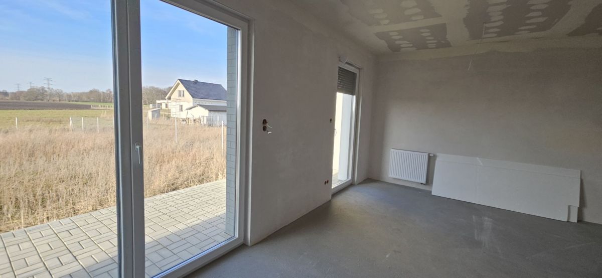 Lokal bardzo funkcjonalny. NA PARTERZE - wiatrołap ( 2,19m2), korytarz (2,6m2), salon z aneksem kuchennym i jadalnią (23,35m2), toaleta ( 2,4m2), 2 sypialnie i pomieszczenie gospodarcze. Możliwość urządzenia 3 sypilani. Wyposażenie i standard : dom budowany w technilogii tradycyjnej, murowany, ściany ocieplone staropinem 15 cm, dach kryty dachówką ceramiczną, okna PCV 3-szybowe, rolety zewnętrzne elektryczne, piec gazowy z zasobnikem na ciepłą wodę, ogrzewanie podłogowe w kuchni, salonie i łazience. W sypialniacj ogrzewanie za pomocą grzejników. Przyłacza: prąd, woda, kanalizacja - szambo, gaz, Internet.