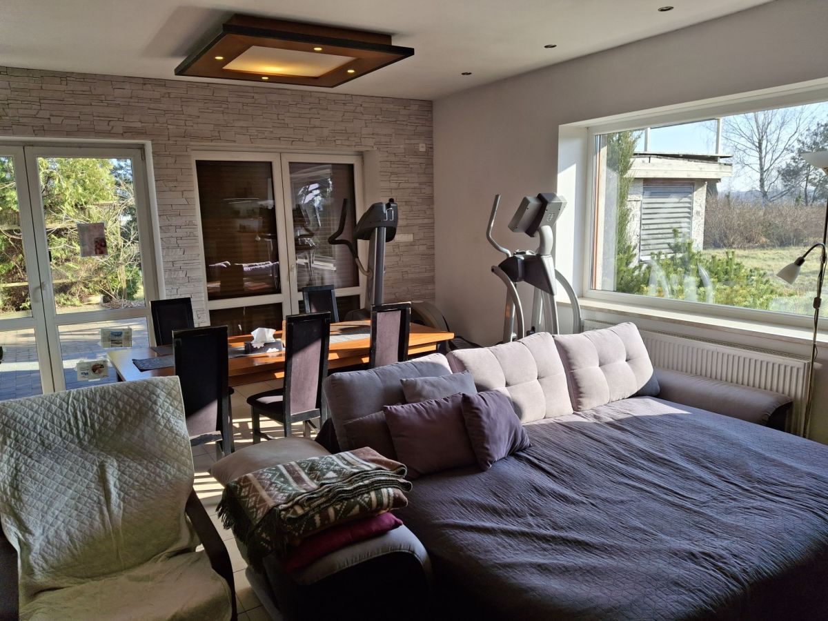 1. umeblowany salon z wyjściem na główny taras do altany i ogrodu,
