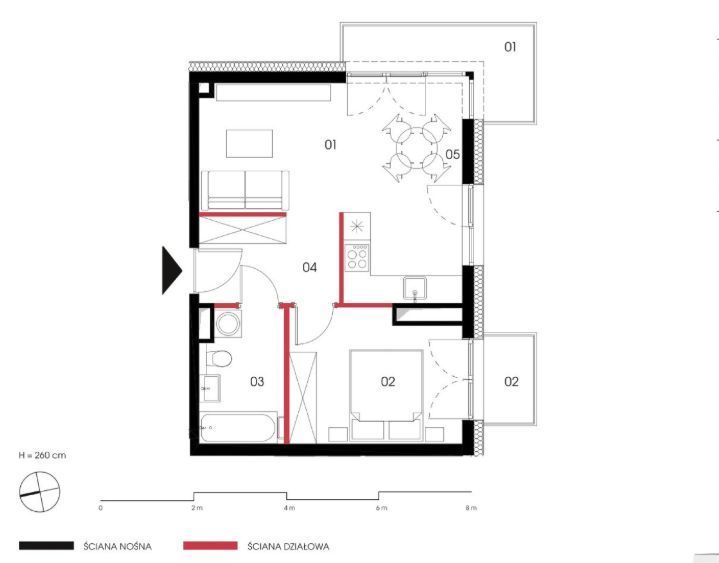 Posiadamy w ofercie kilka lokali o różnych powierzchniach i liczbie pokoi. Przykładowo oferowane mieszkanie, poza bardzo funkcjonalnym układem wnętrza posiada aspekty świadczące o tym że jest nietuzinkowe. Dwa balkony, fantastyczne nasłonecznienie od 3 stron świata a wszystko to w ramach 43 metrowego mieszkania.