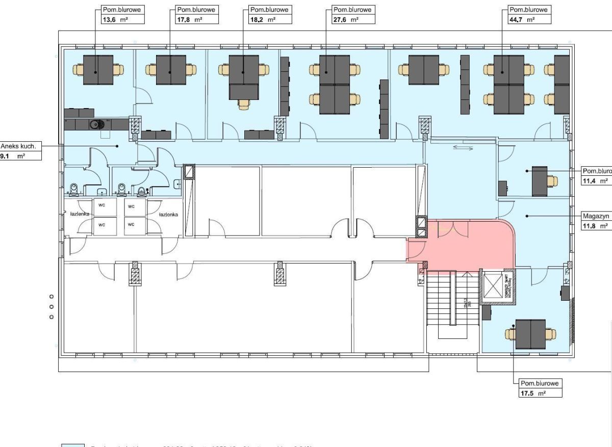 Powierzchnia biurowa: 11.00 EUR / m2 / miesiąc, plus VAT (dla 60 miesięcy najmu)