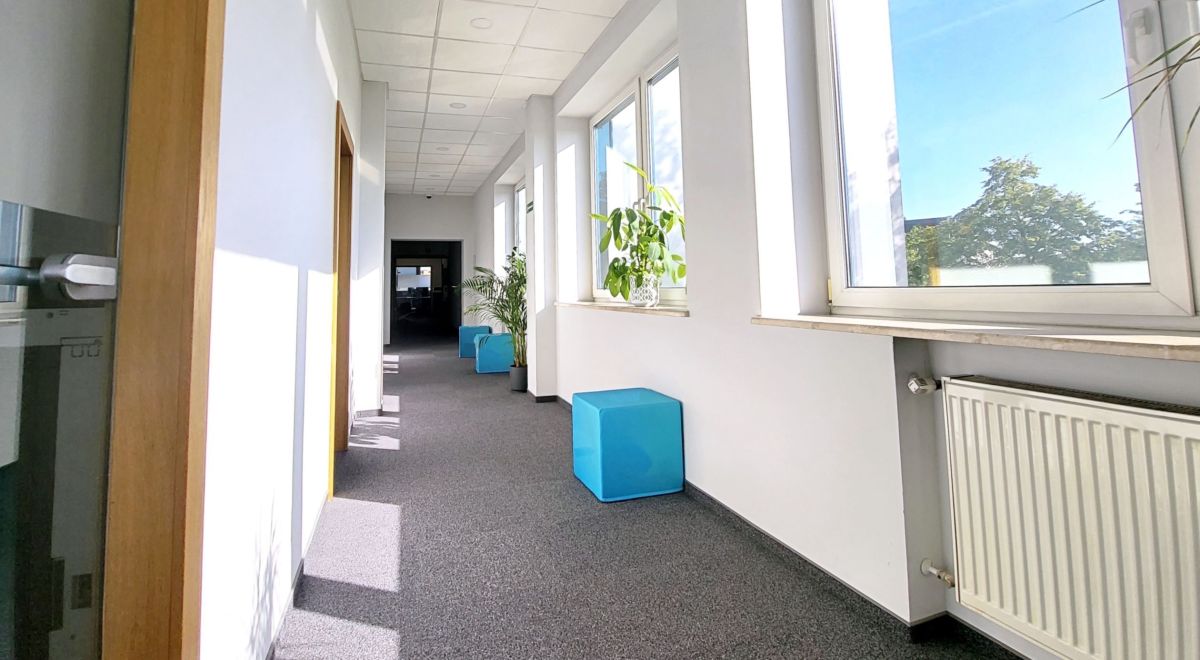 Budynek zachwyca wysokim standardem wykończenia i dbałością o detale. Komfort użytkowania zapewniają dwie windy oraz klimatyzacja, gwarantując optymalne warunki pracy przez cały rok. Przestronna recepcja z całodobową ochroną budynku zapewnia bezpieczeństwo i profesjonalną obsługę gości.